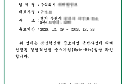 경영혁신형 중소기업(메인비즈) 확인서