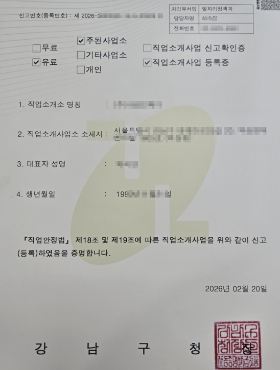 국내유료직업소개사업 등록증 페이지 정보 등록일 26-03-06 14:39 조회 10회 목록 본문 국내유료직업소개사업 등록 성공 사례 다음글경영혁신형 중소기업(메인비즈) 확인서 26.02.19 목록